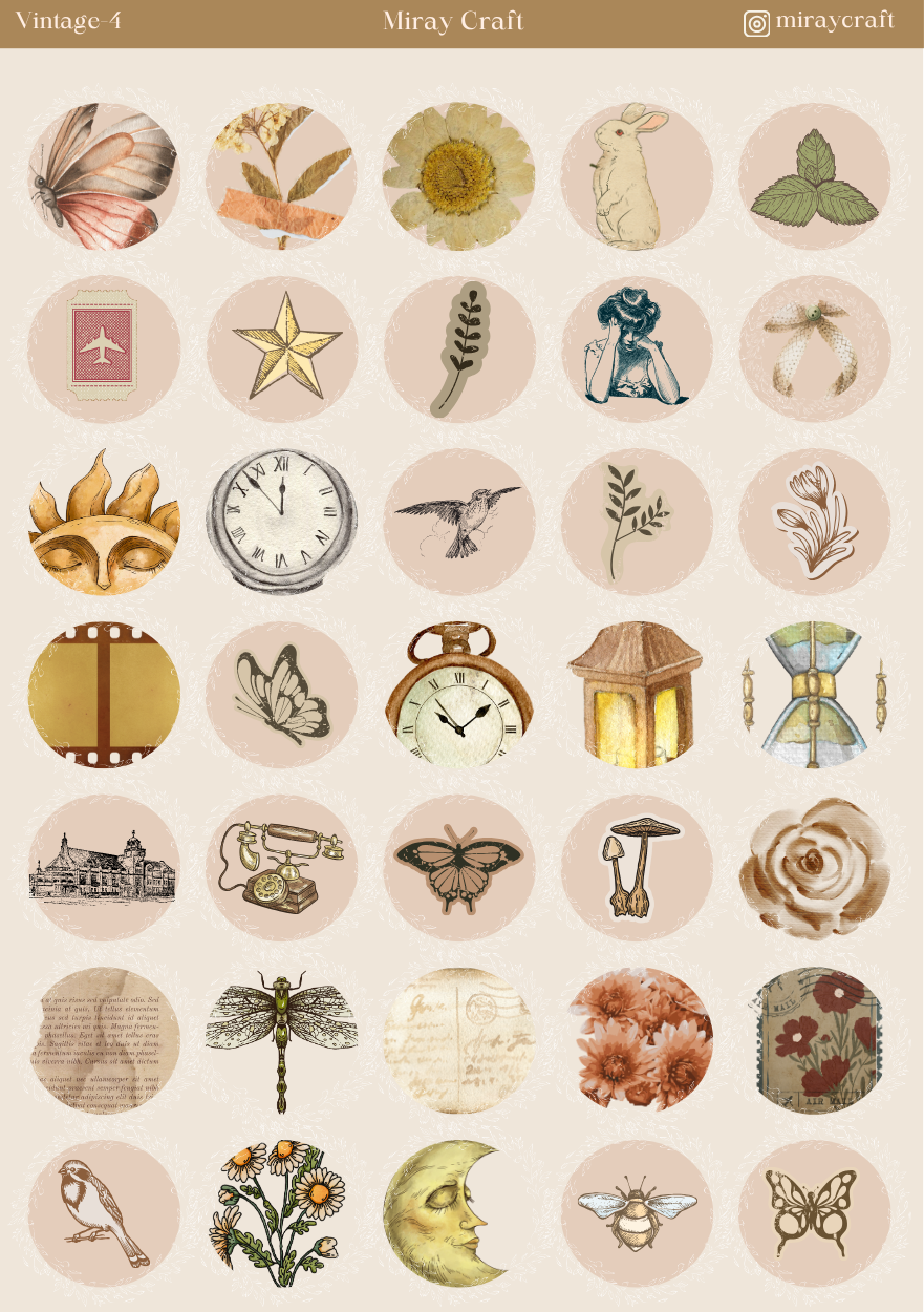 Geçmişin zarafetini ve retro estetiğini yansıtan bu vintage temalı stickersayfası, nostaljik detayları ve sıcak renk tonlarıyla tasarlandı. Her biri farklı desen ve grafik unsurlarıyla hazırlanmış bu stickerlar, planlayıcılarınıza, defterlerinize ve hobi projelerinize estetik ve karakter dolu bir dokunuş kazandırır.