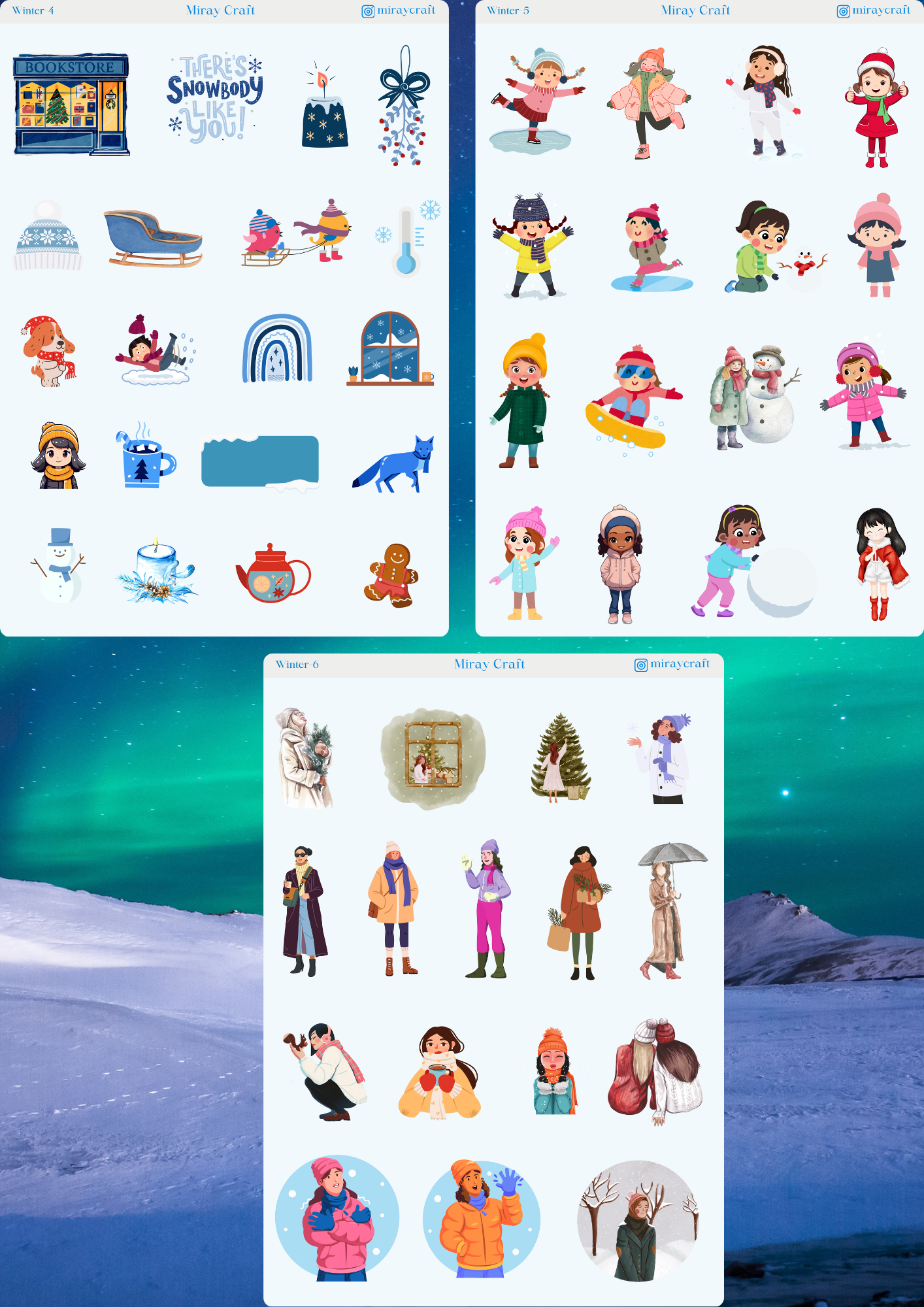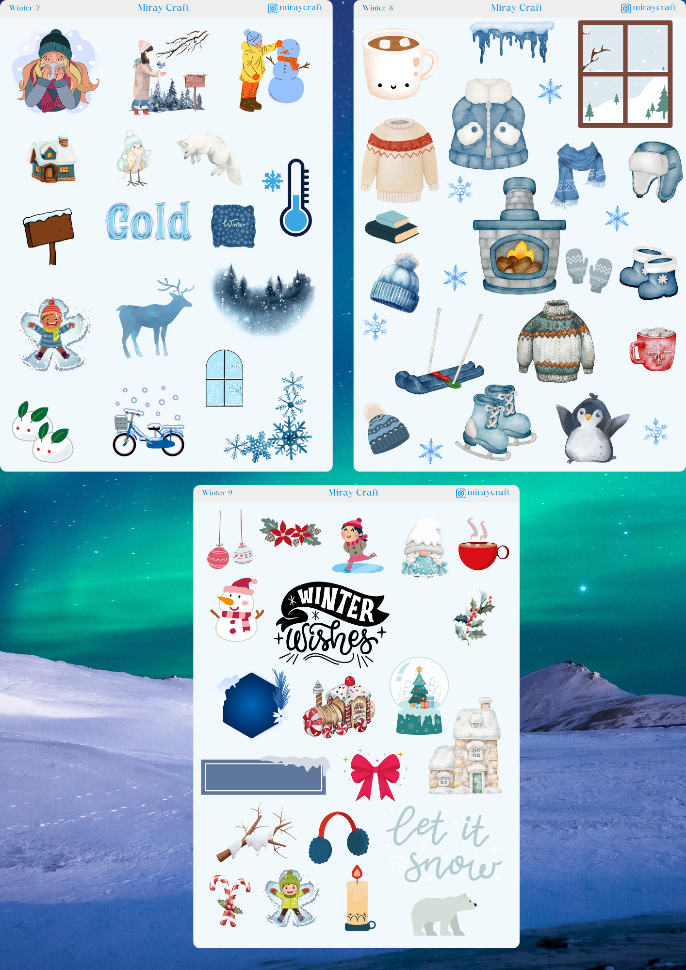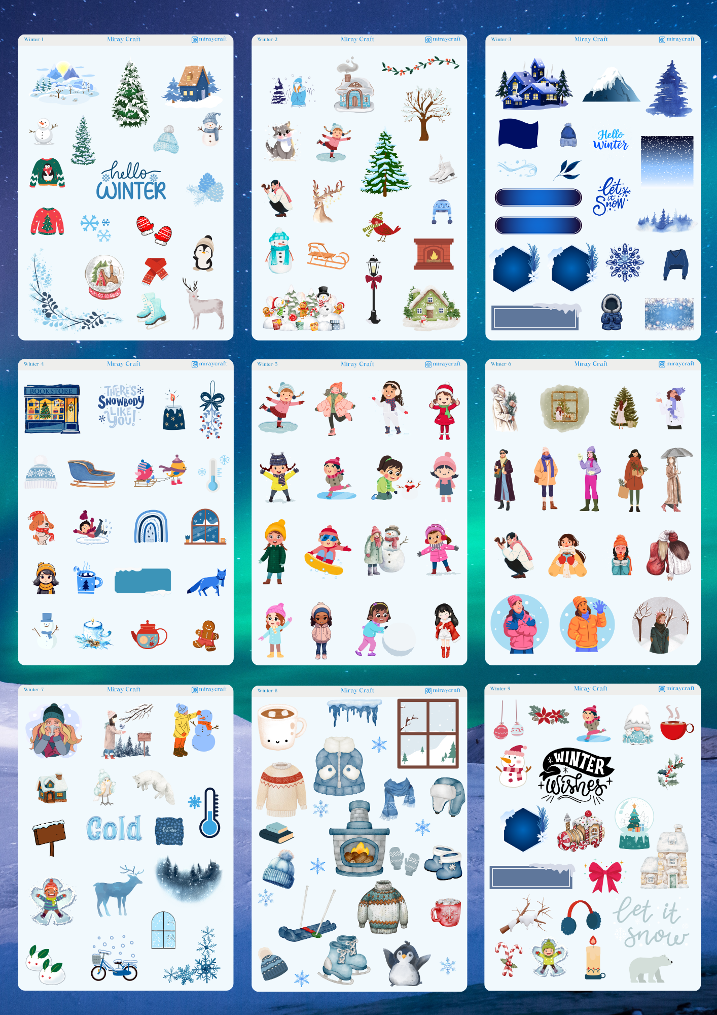Bu set, tamamen Kış temalı 9’lu özel kesim sticker sayfasından oluşmaktadır. Her bir sayfa 12×17 cm boyutunda, parlak,arkası yapışkanlıdır. Bullet journal, ajanda planlayıcı, scrapbook, kolaj ve daha pek çok özgün projede kullanılmak üzere tasarlanmıştır. Kullanım Alanları: